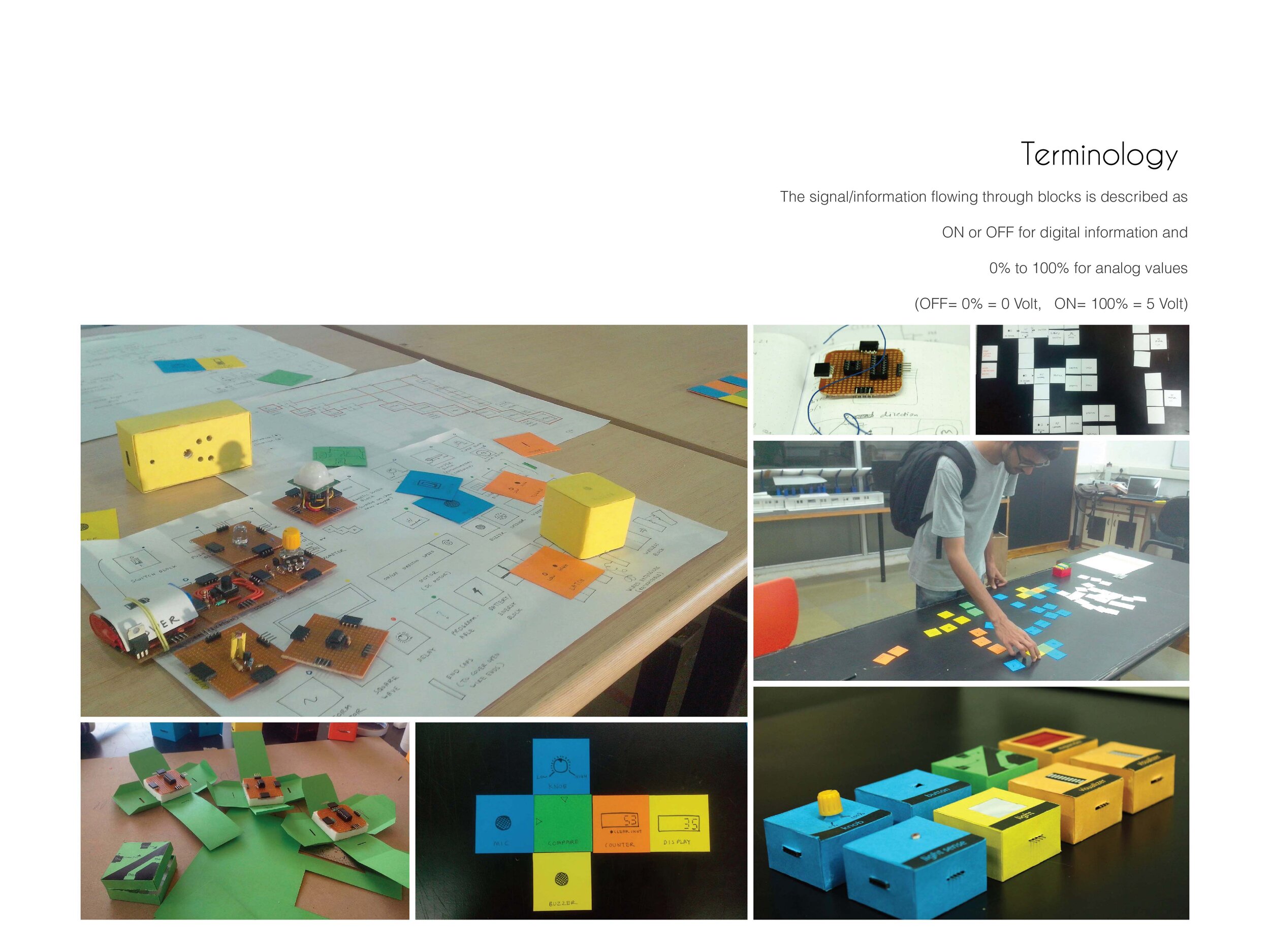 After arriving at the idea, quick paper mock-ups of the modules were made to test the scope and feasibility of the grammar of blocks.